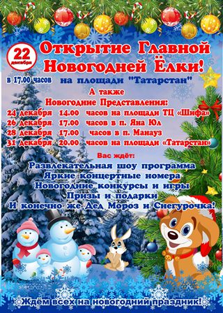 22 декабря в 17.00 часов на площади "Татарстан" состоится торжественное открытие Главной новогодней елки.