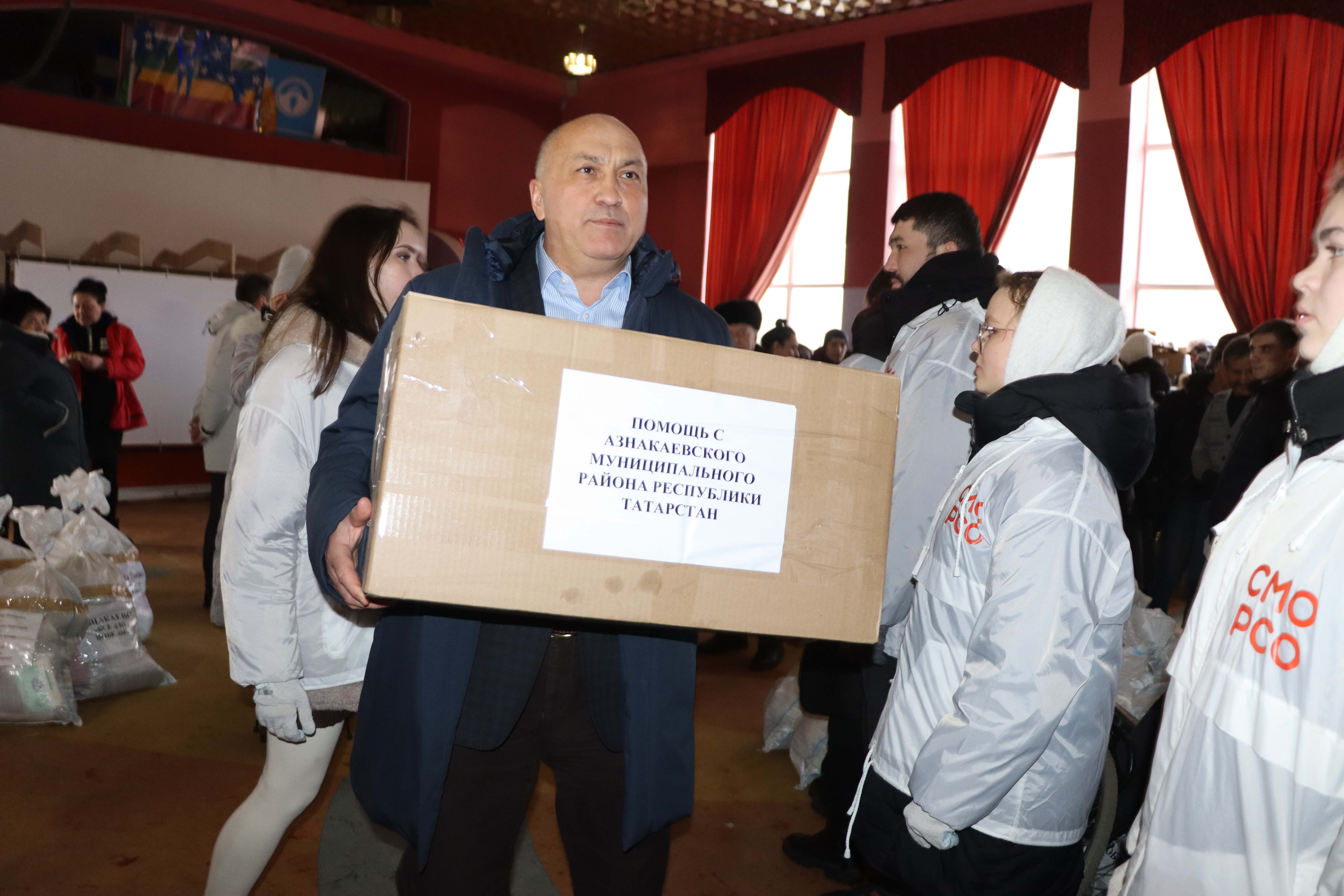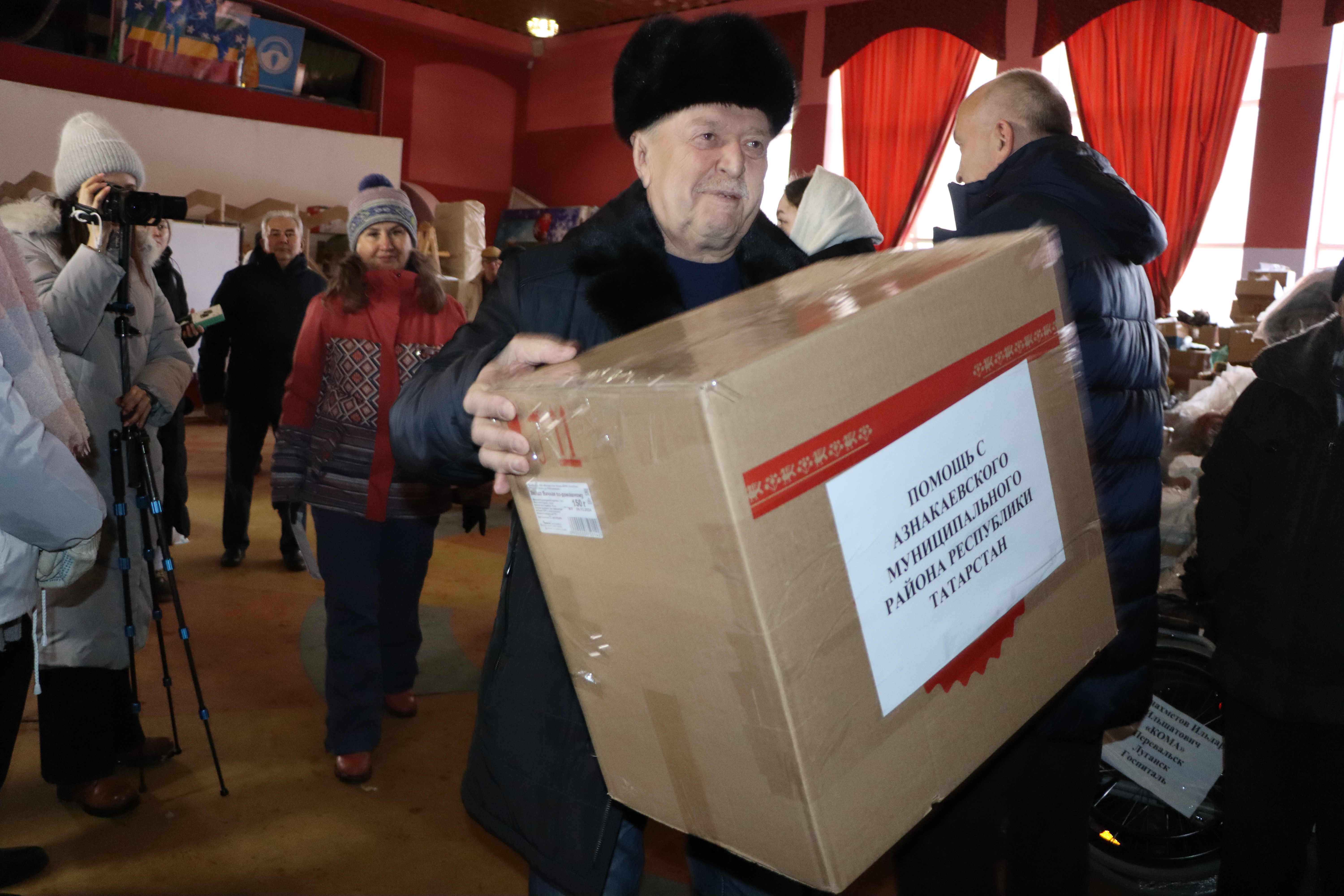 Депутат Государственного Совета Республики Татарстан 7 созыва Назип Хазипов вместе с главой Азнакаевского района Марселем Шайдуллиным приняли участие в отправке груза.
