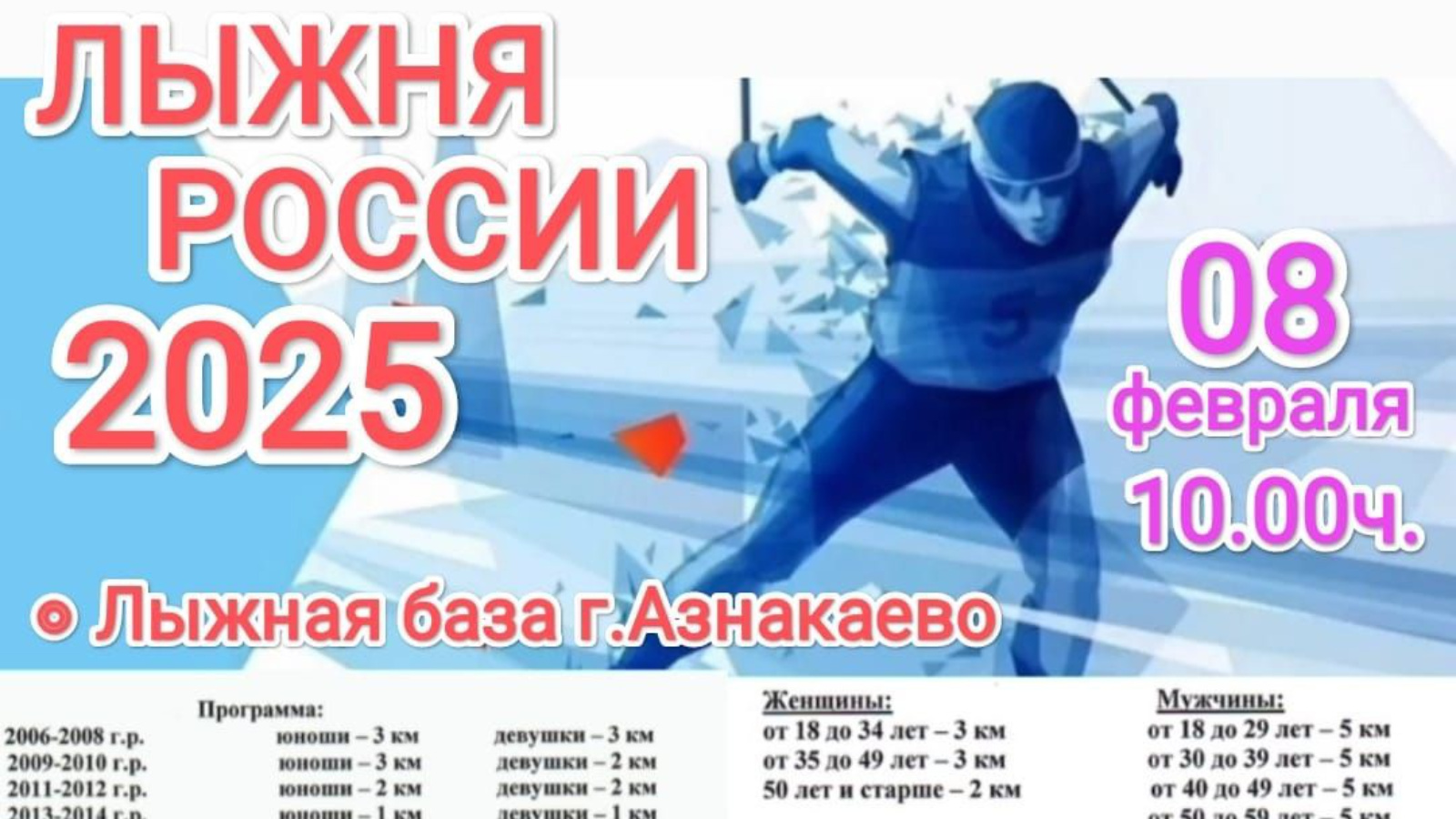 8 февраля пройдут массовые лыжные соревнования «Лыжня России-2025»!