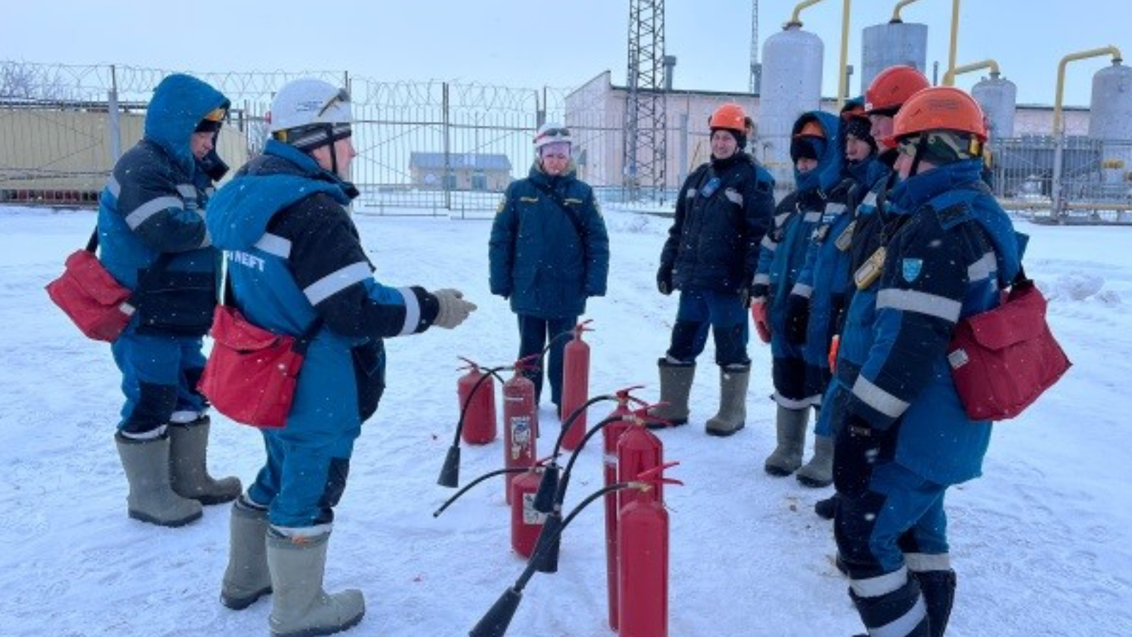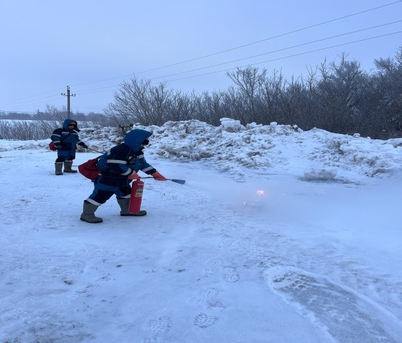 12 февраля 2025 года на охраняемом объекте КС-17 НГДУ «Азнакаевснефть» старший мастер Гилязев И.В. совместно с инструктором 24 ПЧ Сиразетдиновой Л.М. провели учебно-тренировочное занятие. Цель данного занятия - практическое ознакомление и работа с огнетушителем вновь принятых работников на модульном очаге пожара. Индивидуальные тренировки проводятся для вновь принятого персонала после прохождения инструктажа на рабочем месте, для персонала, который по какой-либо причине не учувствовал в плановой тренировке (отпуск, болезнь и т.п.). Работник перед тушением возгорания определяет класс пожара и использование наиболее пригодный для его тушения огнетушитель. Подходит к очагу пожара тушить следует с наветренной стороны, начиная с его переднего края постепенно перемещаясь вглубь. Начинать тушение разлившихся легковоспламеняющихся и горючих жидкостей необходимо с передней кромки, направляя струю порошка на горящую поверхность, а не на пламя. Льющуюся с высоты горящую жидкость тушить сверху вниз. Горящую вертикальную поверхность тушат сверху вниз. При наличии нескольких огнетушителей необходимо применять их одновременно. Не подносите огнетушитель, позволяющий тушить пожары класса Е, к горящей электроустановке ближе расстояния, указанного на этикетке огнетушителя. Следите, чтобы потушенный очаг не вспыхнул снова, никогда не поворачивайтесь к нему спиной!.jpg)