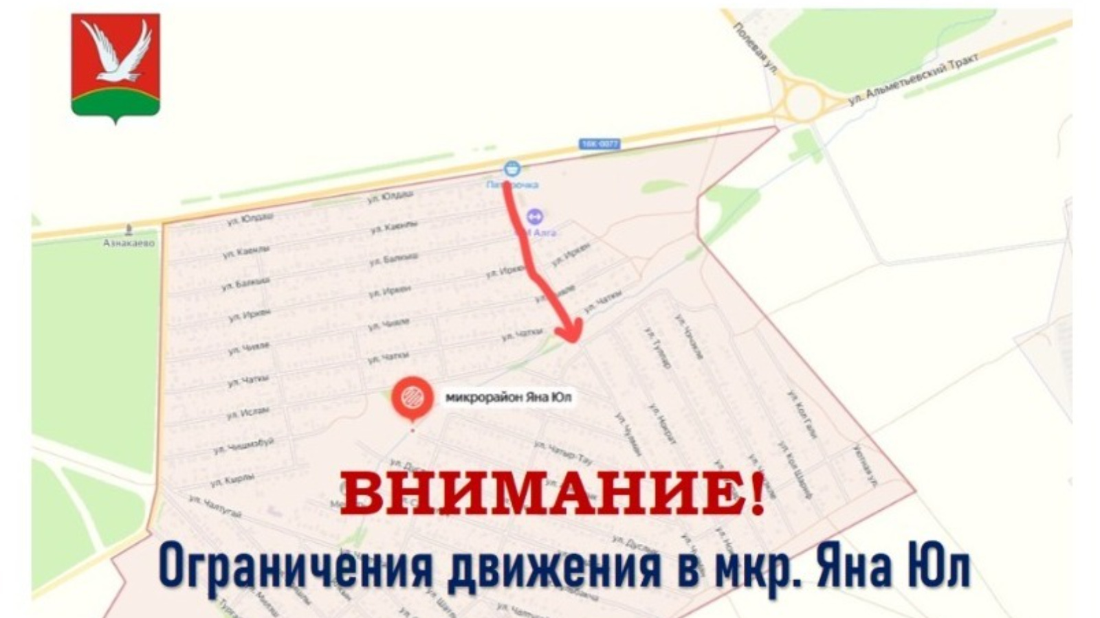 Проезд будет закрыт на период проведения работ. В качестве альтернативного маршрута рекомендуем использовать "прямой" проезд через микрорайон Тукая.