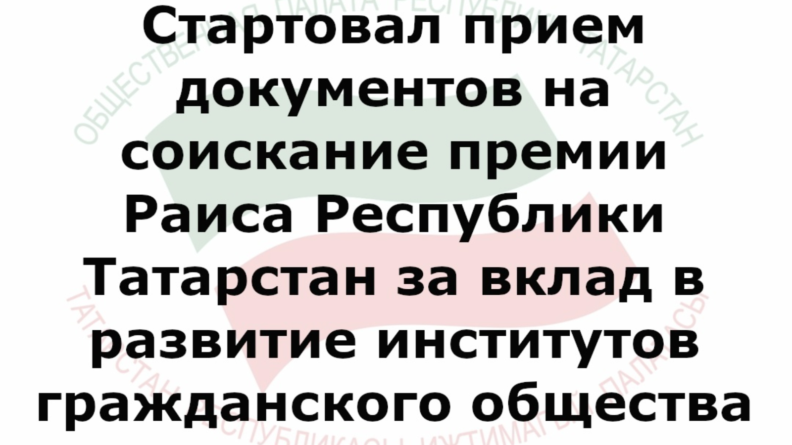 Внимание, НКО и активисты Татарстана! Комитет по присуждению премии объявляет о старте приема документов на соискание ежегодной премии Раиса РТ.