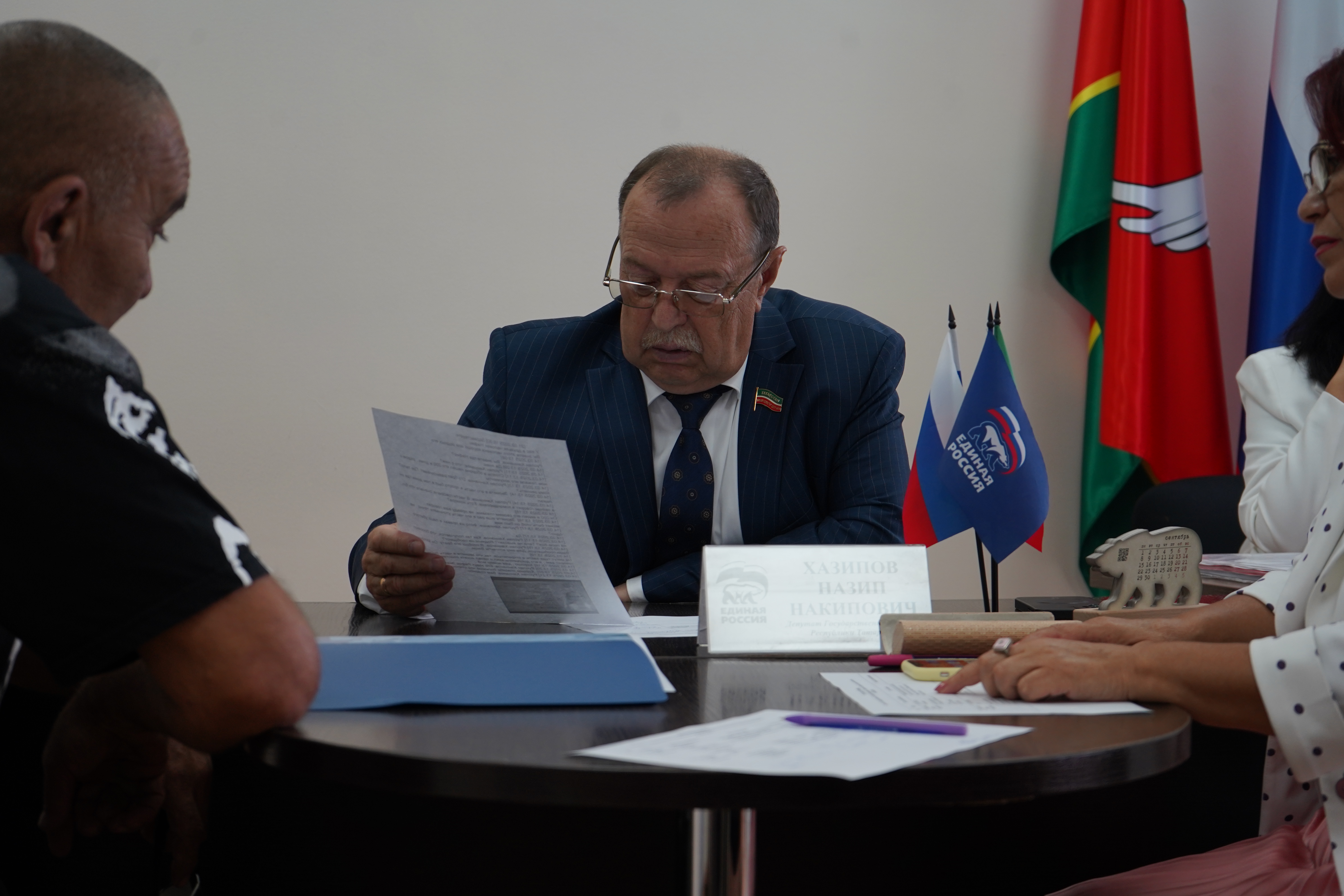 Сегодня в Азнакаевском местном отделении партии «Единая Россия» прошел прием граждан, который провел наш депутат Государственного Совета Республики Татарстан Назип Хазипов. В мероприятии также приняли участие заместитель Главы Азнакаевского района Роза Галеева и управляющий делами районного исполнительного комитета Руслан Давлетшин.