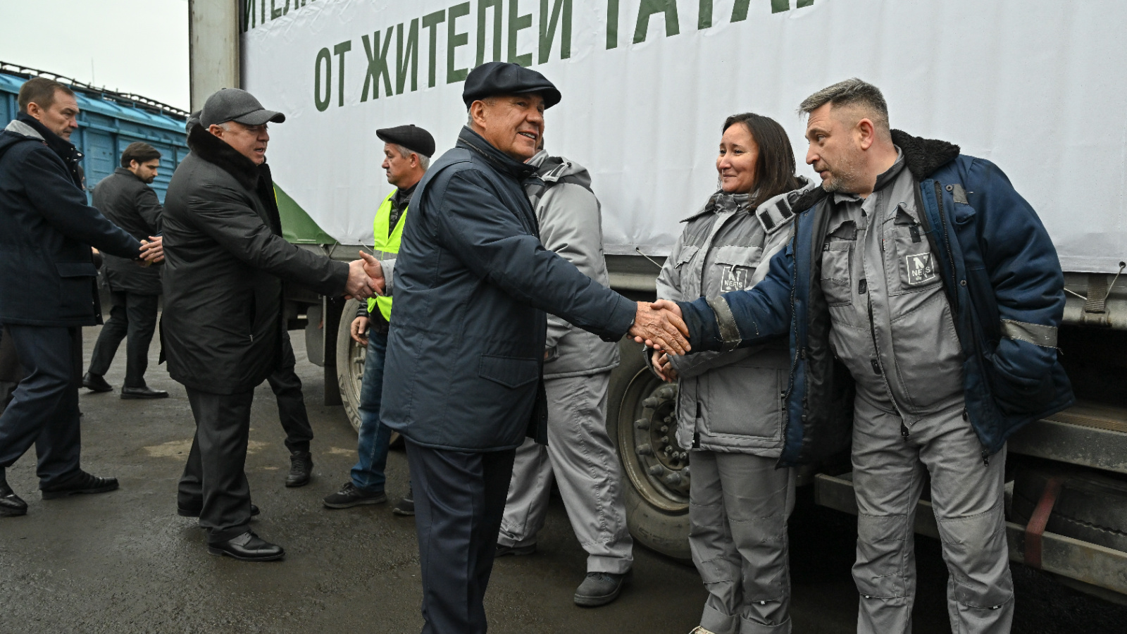 Рустам Минниханов и Ирек Богуславский пообщались с водителями и сопровождающими гуманитарных фур. Они выразили им благодарность и пожелали удачи.