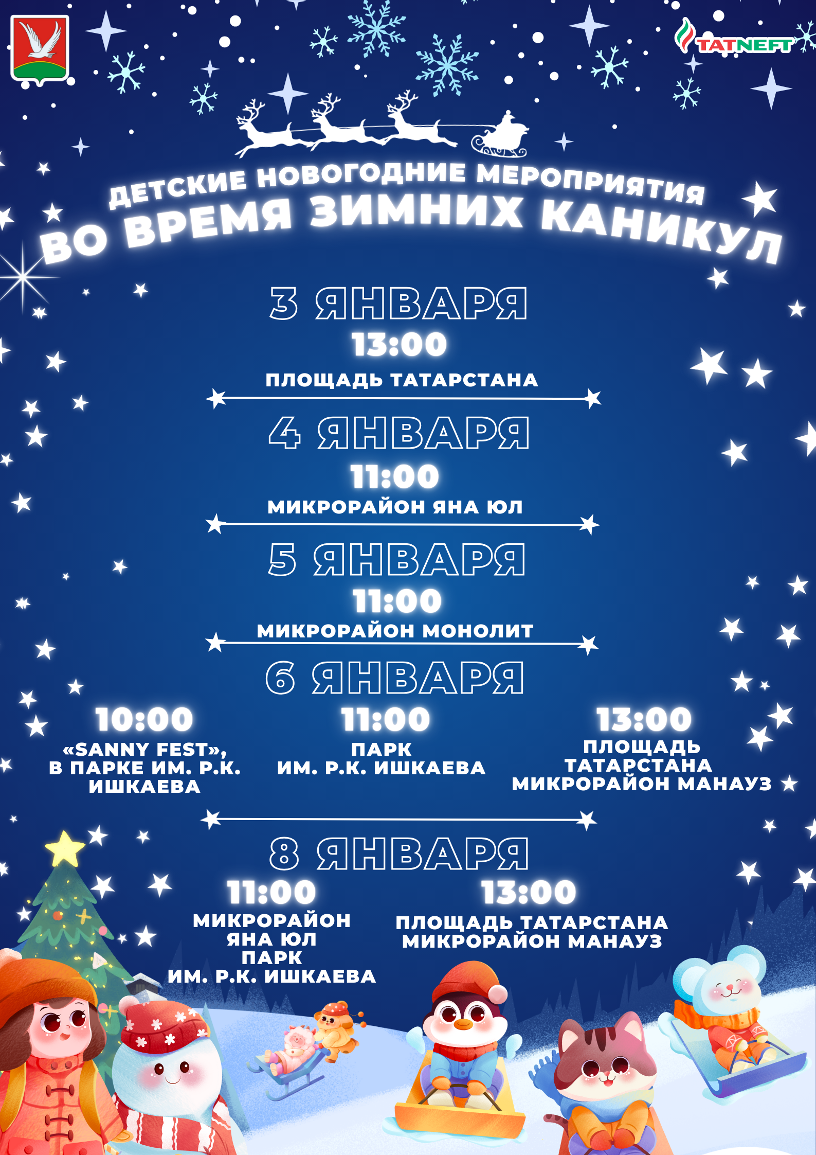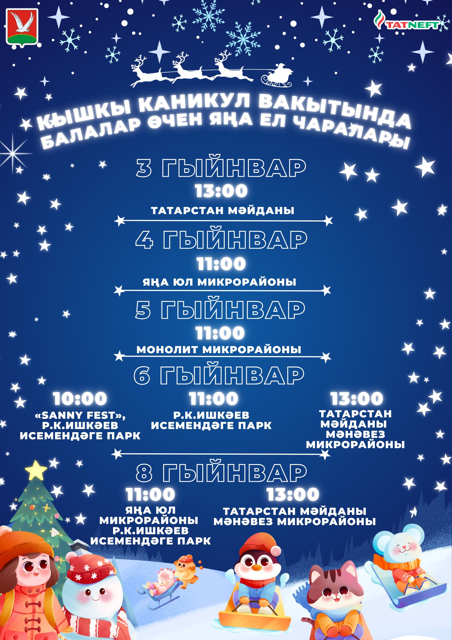 Привет, Азнакаево! Готовы к настоящей зимней сказке? Новогодние каникулы обещают быть незабываемыми, ведь наш город приготовил массу интересных мероприятий для всех возрастов!Мы ждём именно тебя!