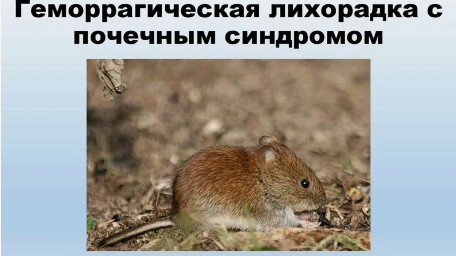 Источником ГЛПС в природе являются мелкие мышевидные грызуны (рыжая полевка, полевая мышь, серая полевка и др.), выделяющие вирус во внешнюю среду.