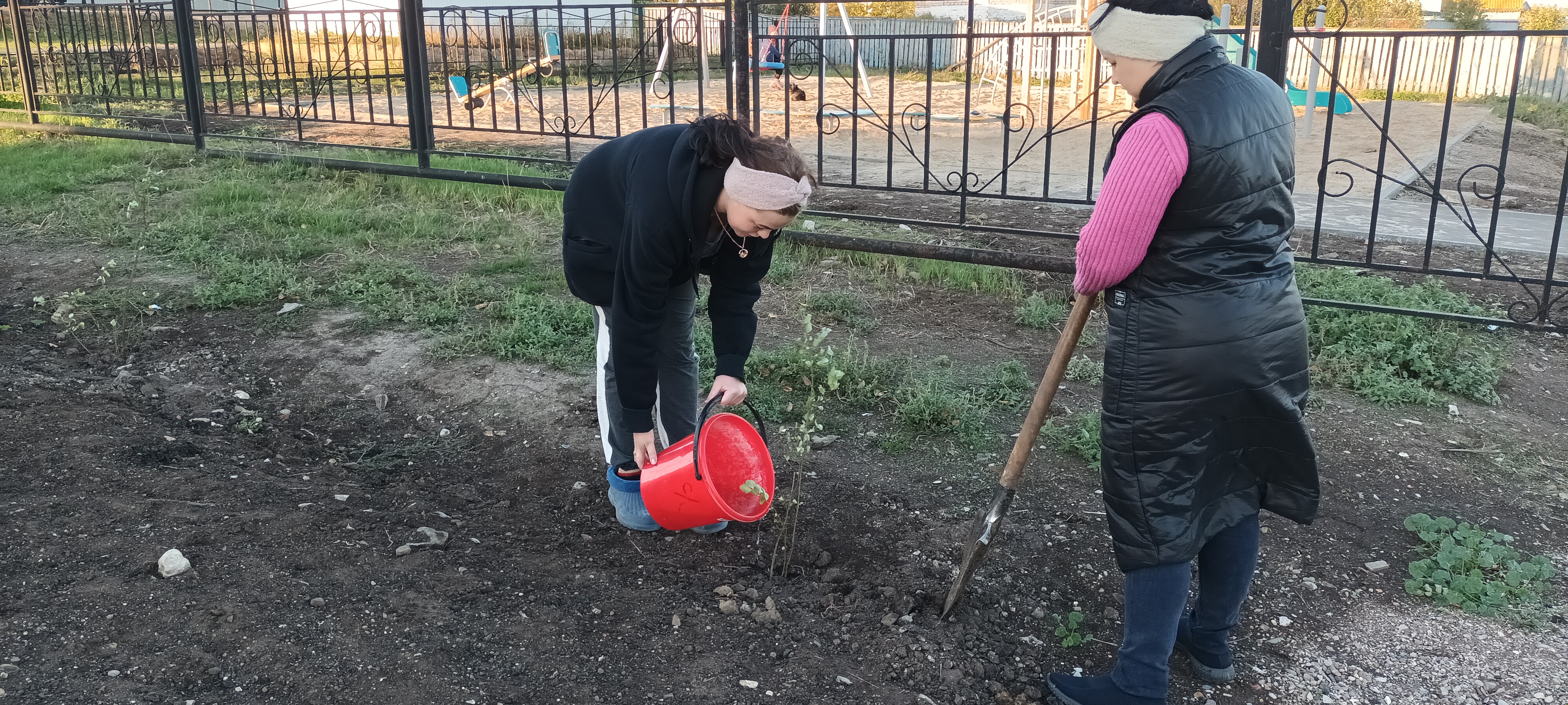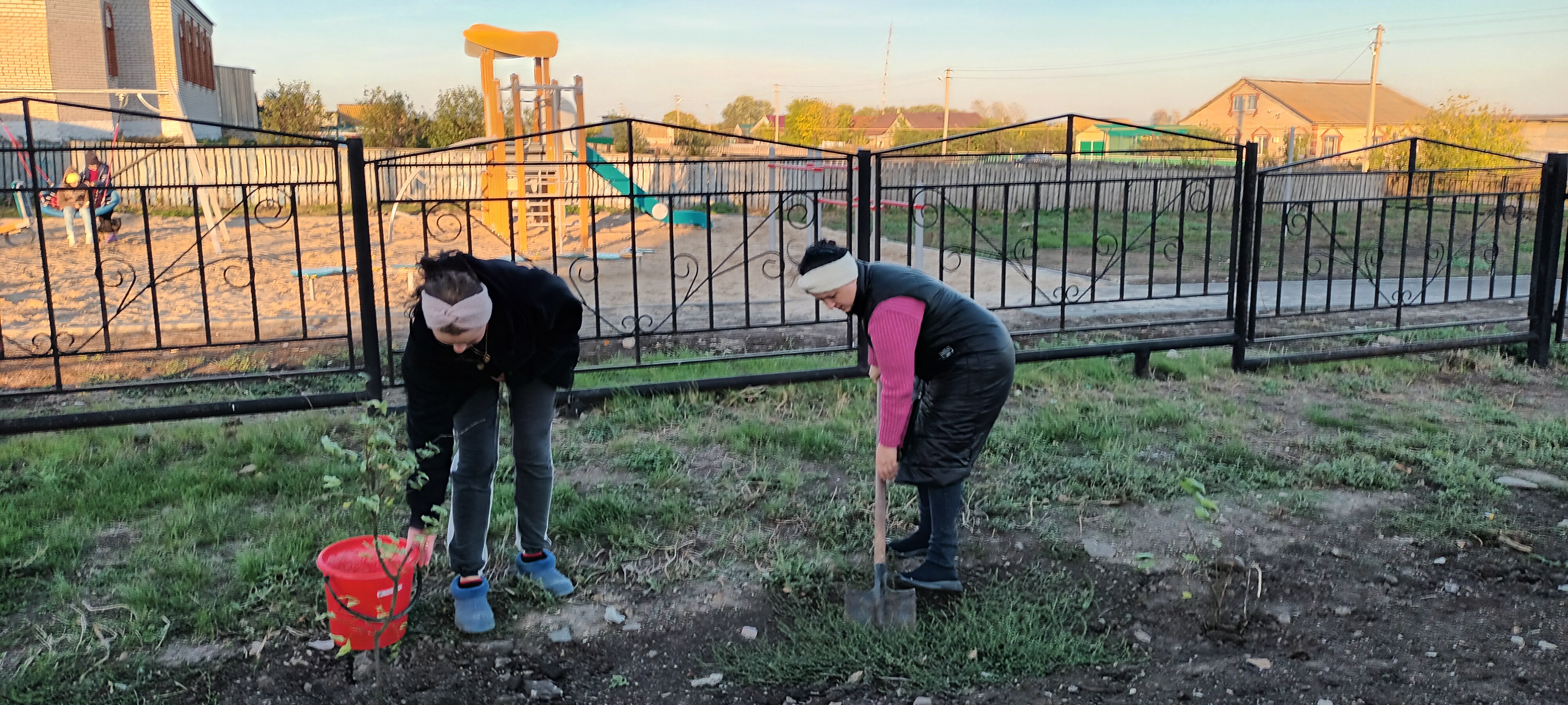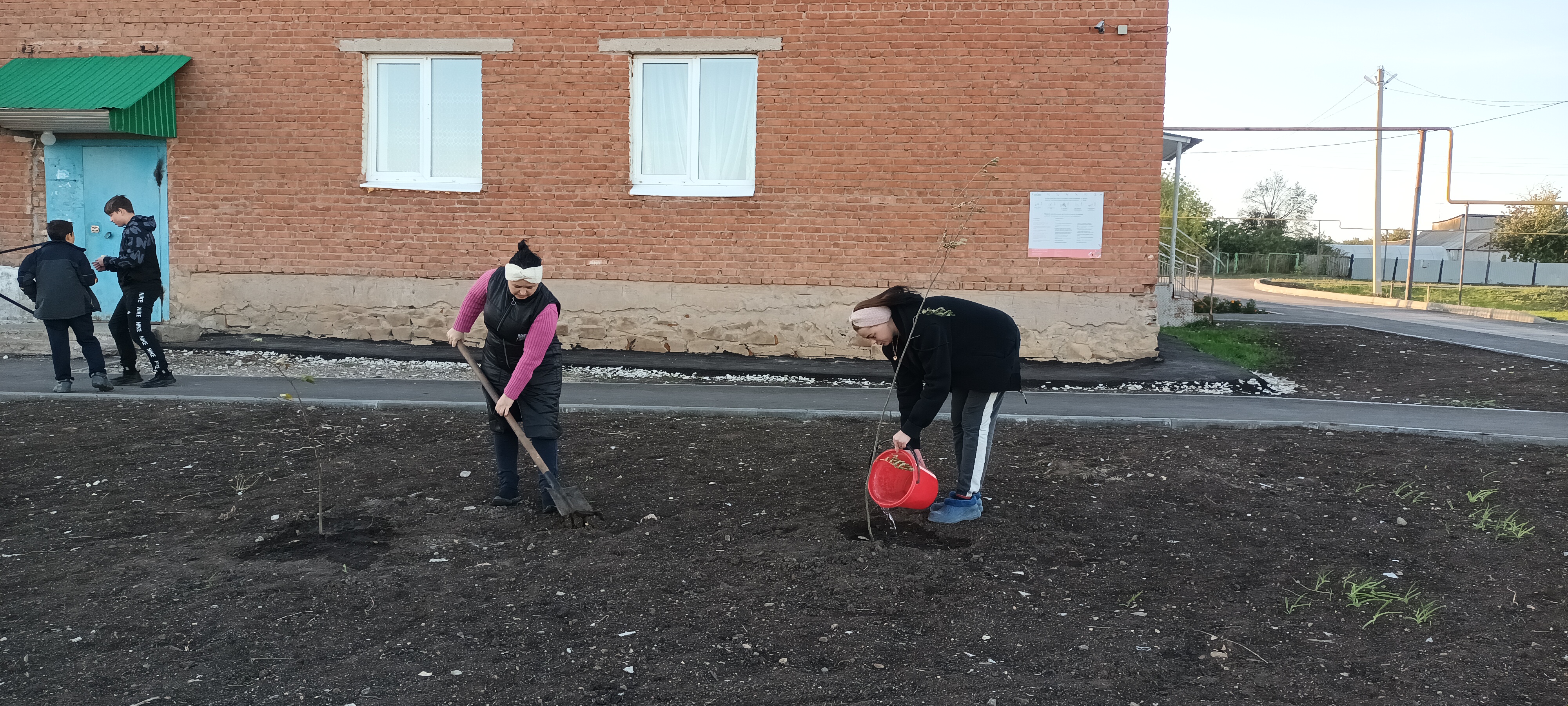 27 сентября 2022 года .Посадка деревьев во дворе двухэтажного жилого дома и в детском парке с.Большой Сухояш
