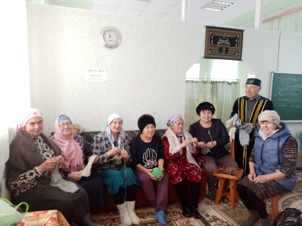 28.12.2022 В мечети "Нур" с.Большой Сухояш Совет ветеранов организовал вязание шерстяных носков для участников СВО