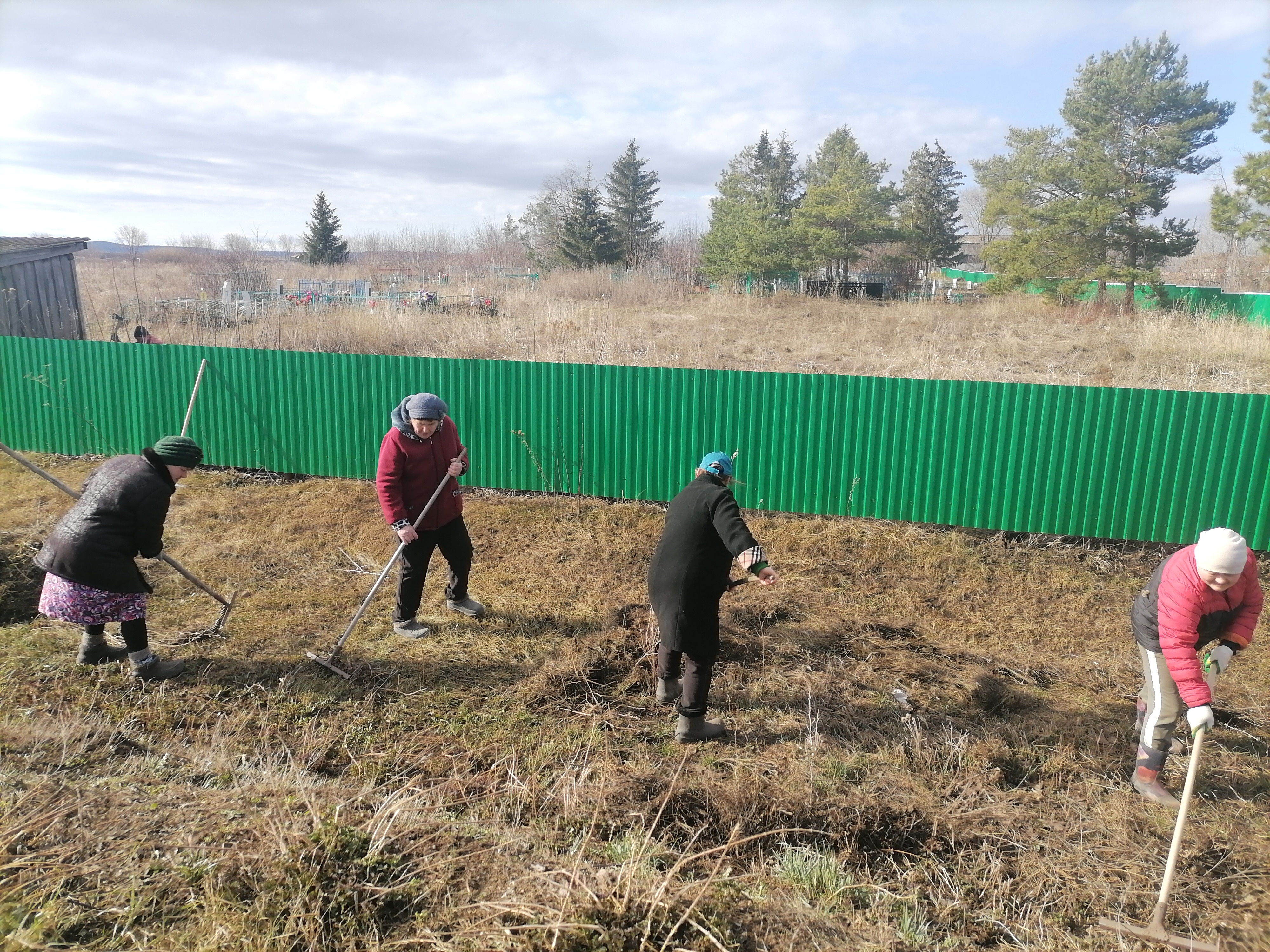 07.04.2023г. провели субботник прилегающей территории к кладбищу с.Большой Сухояш. Участвовало более 40 человек.