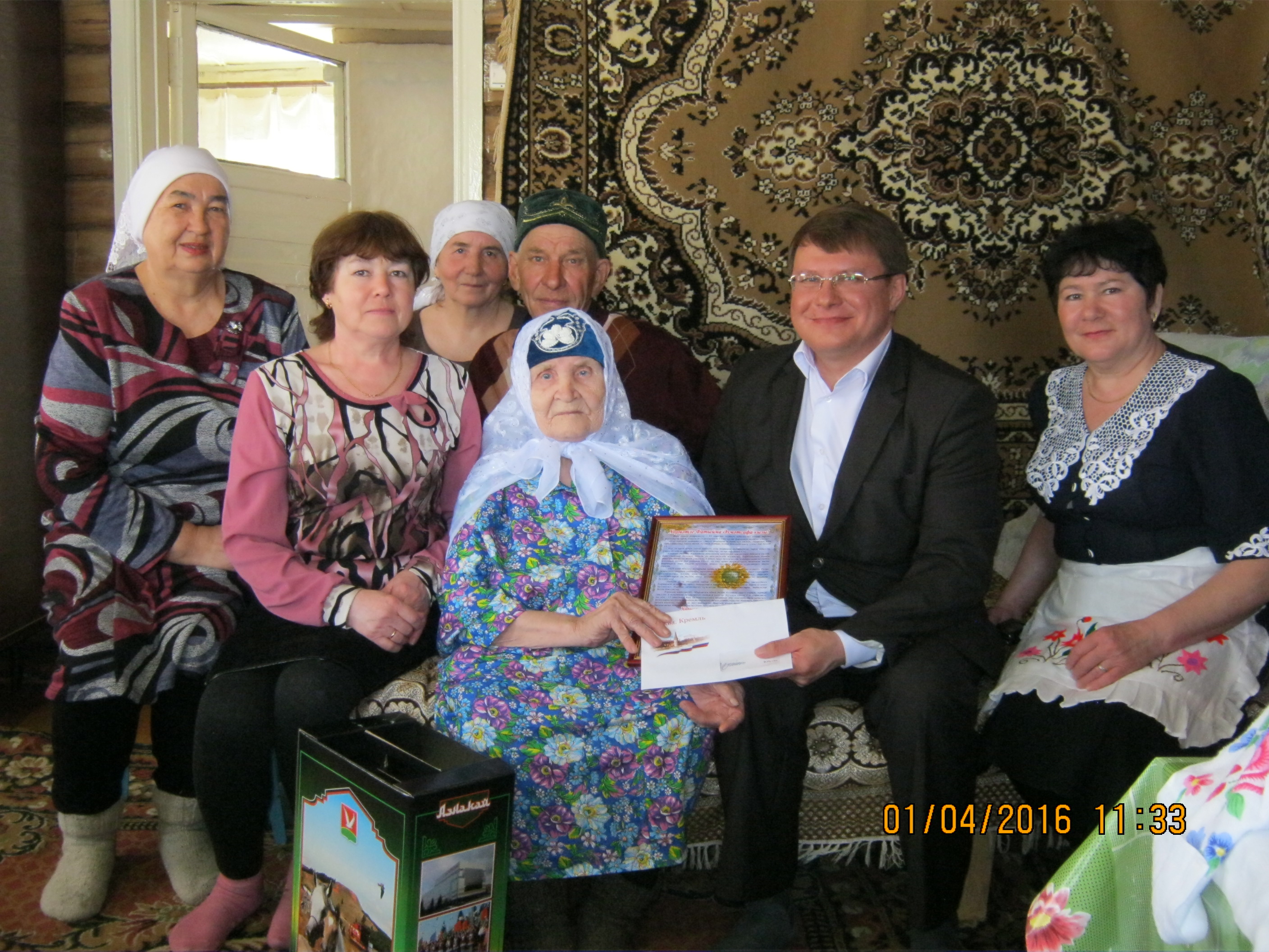 Руководитель аппарата районного Совета Азнакаевского муниципального района А.Ф.Халиуллин, Глава Чалпинского сельского поселения Р.Х. Магдиев поздравили с 95-летним юбилеем жительницу с. Камышлы Сафину Фатыму Ахметсафовну