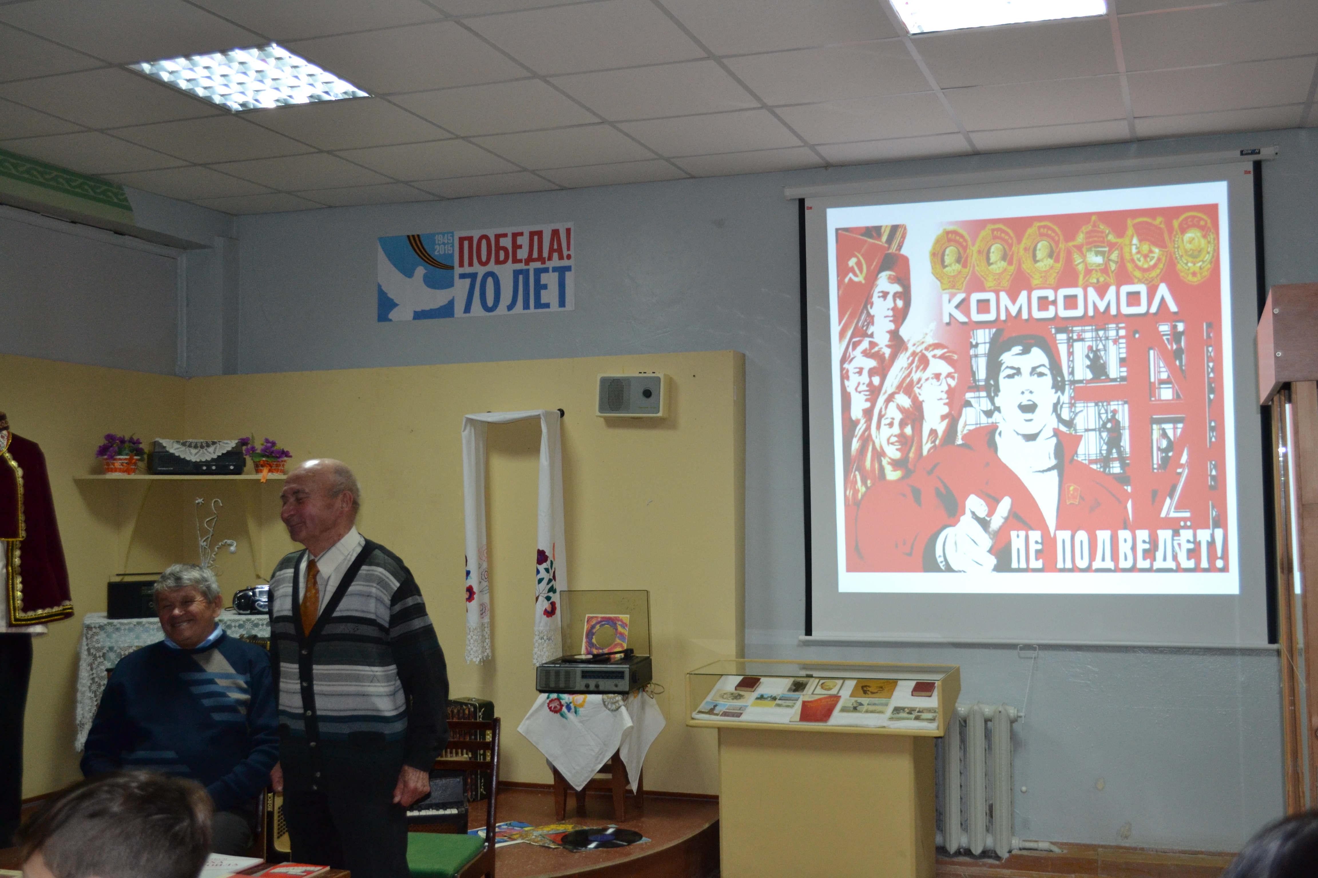 15.10.2015 в МБУ «АКМ» прошло мероприятие, посвященное дню рождения комсомола. На встречу были приглашены старшеклассники, которые по возрасту могли быть комсомольцами. В этот день ребята узнали славную биографию Ленинского комсомола, государственные награды, традиции комсомольских ударных строек, строительных студенческих отрядов, героизм комсомольцев в годы гражданской и Отечественных войн. Школьники узнали о правилах приема в комсомол, о делах и свершениях комсомольской юности своих родителей и дедов. На встречу были приглашены бывшие лидеры комсомолы, секретари райкома ВЛКСМ Музафаров Н.Ф. и Масалимов М.М. Много интересных событий из истории комсомола нашего района вспомнили бывшие комсорги; ребята получили советы и наставления от наших гостей. Подготовили и провели научные сотрудники Мустафина Г.Д., Мусина Р.К.