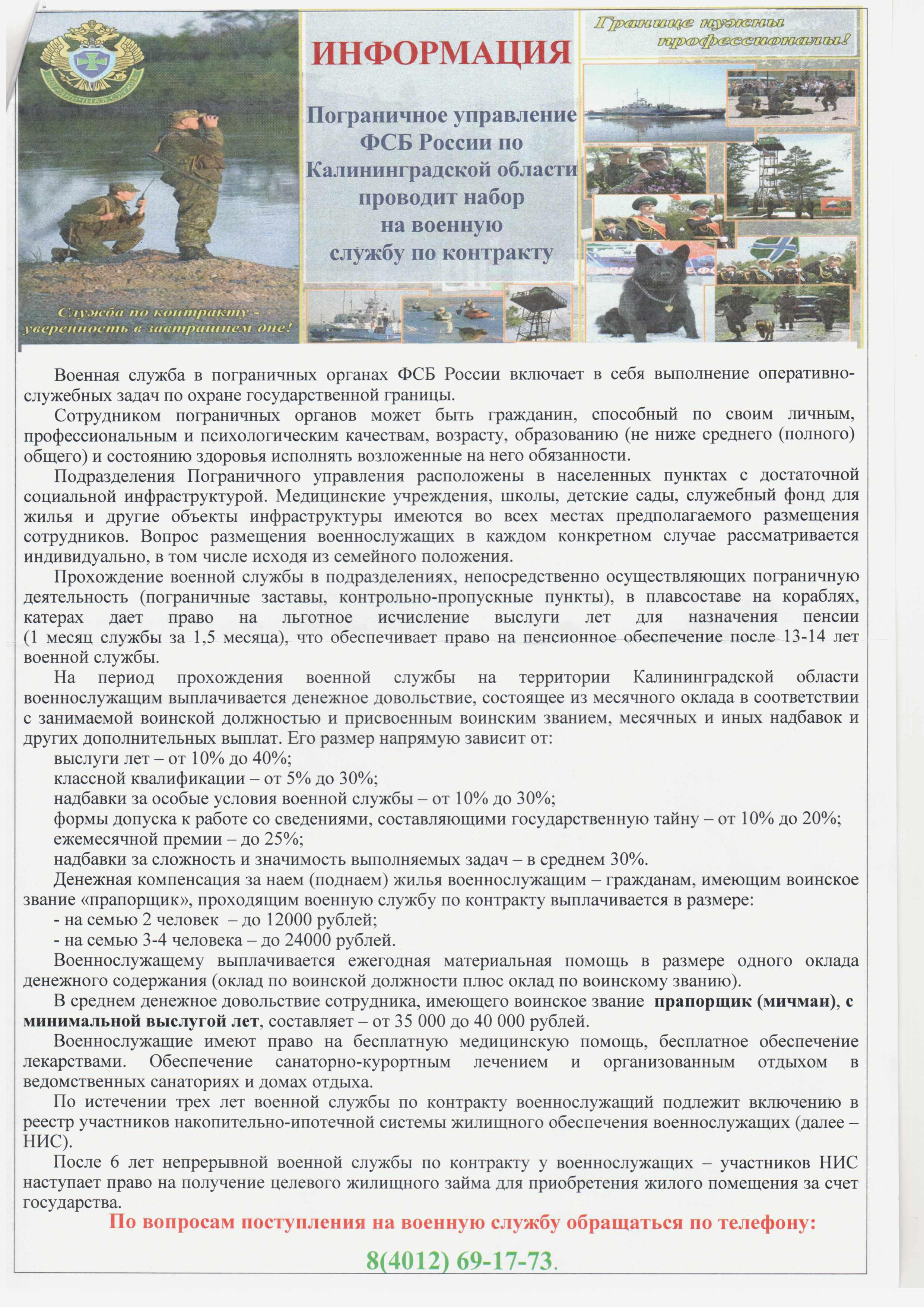 Калининград өлкәсе буенча Россия ФСБ чик буе идарәсе җыелма җыя контракт буенча хәрби хезмәткә