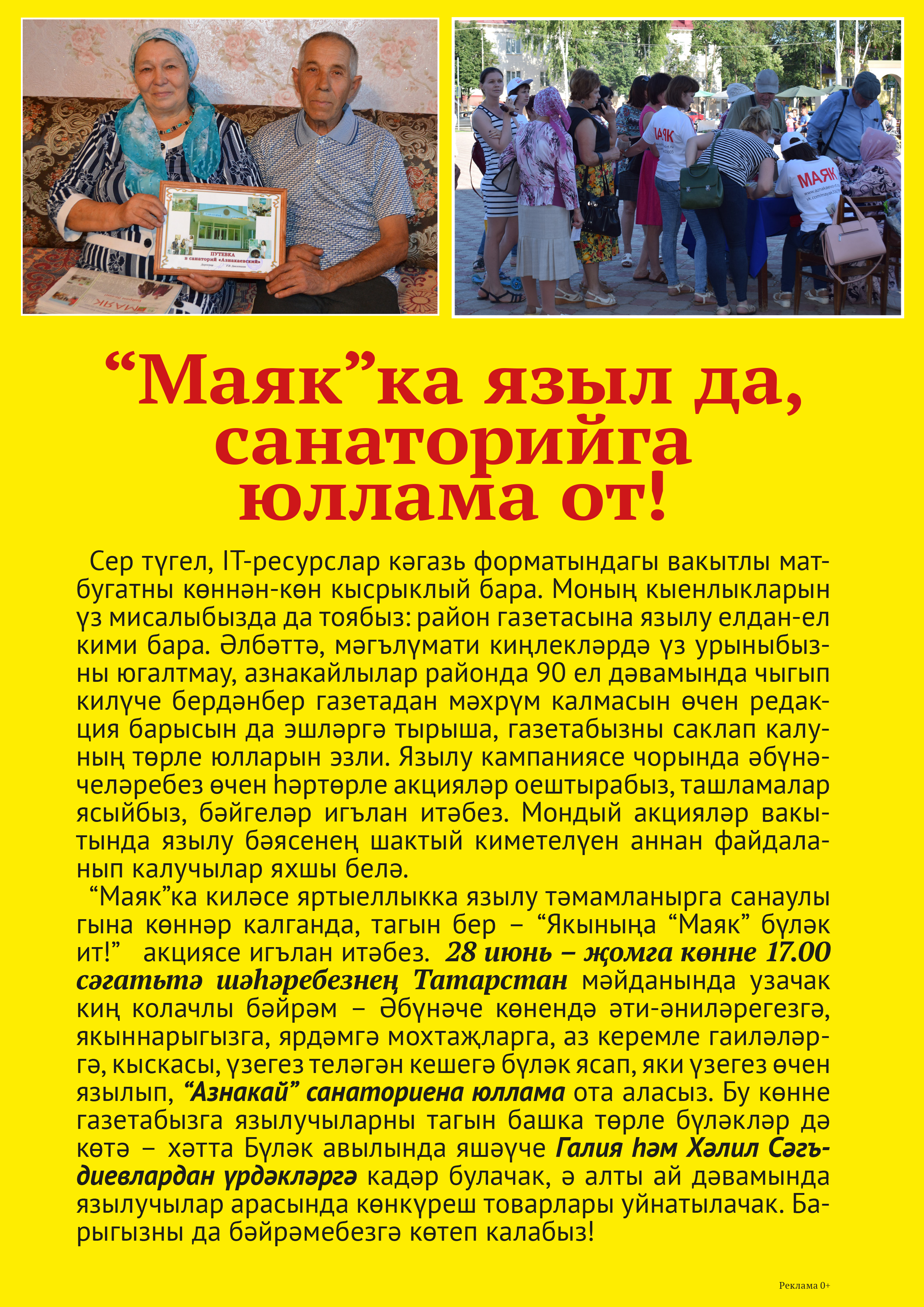Игътибар! Иртәгә "Маяк"район газетасының икенче яртысына язылу тәмамлана