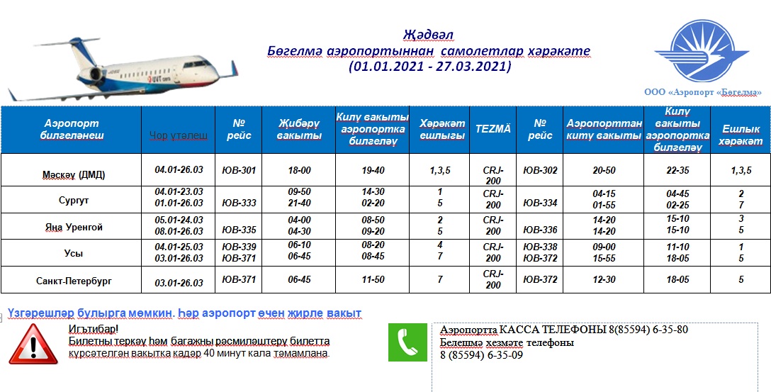 Бөгелмә аэропортыннан самолетлар хәрәкәте