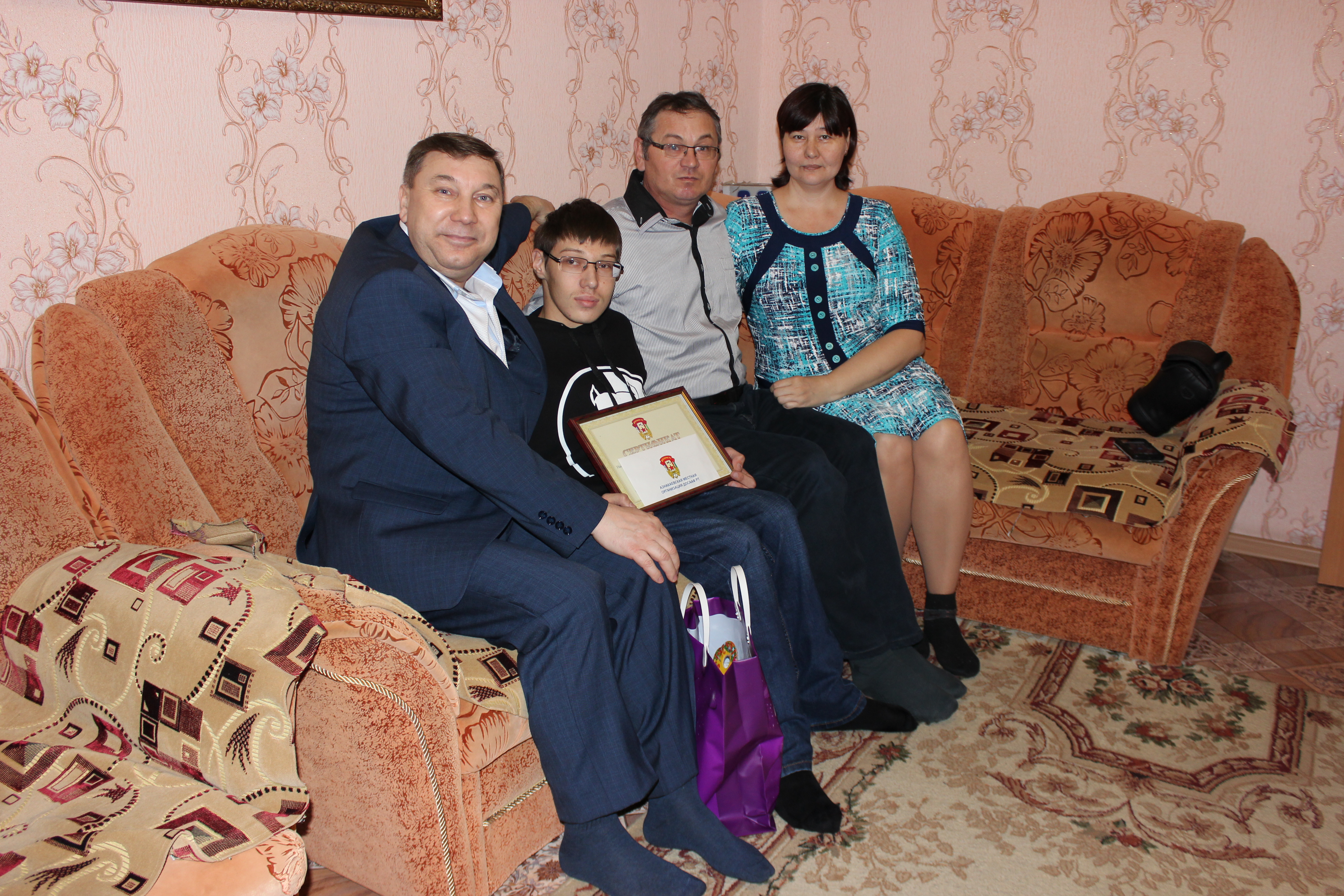Азнакай районы ДОСААФ Рәисе Хәмидуллин Гәрәй Мөҗәһит улы мөмкинлекләре чикләнгән балалар белән очрашты. Аларга сертификатлар һәм Яңа ел бүләкләре тапшырды